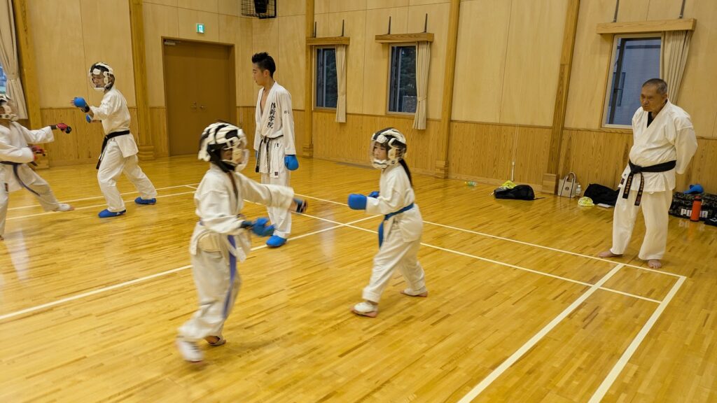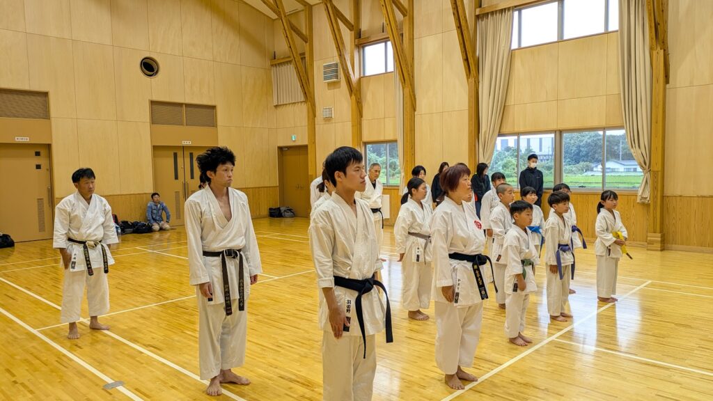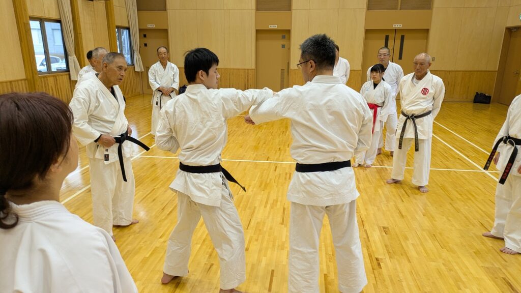 10月11日、北犬飼コミュニティセンターで栃木県糸東会強化練習会を開催しました。参加者は25名。そのうち茨城県から3名の参加がありました。午前の部は大人の強化練習で、スーパーリンペイの形を学び、那覇手の基本的な技の使い方を確認しながら形の演武を行いました。午後の子供の強化練習は、形と組手に分かれ関東大会に向けての練習会となりました。関東大会前の最後の強化練習会で、他道場との交流もでき学びの多い練習会となりました。